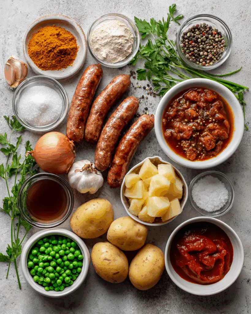Australian Curried Sausages are all about that creamy, comforting balance. The sausages are meaty and firm, the sauce is silky and spiced but not hot, and the potatoes soften into buttery cubes. You get sweetness from onions and peas, earthiness from curry, and a tiny tang from Worcestershire. Each bite feels like warmth in a spoon.