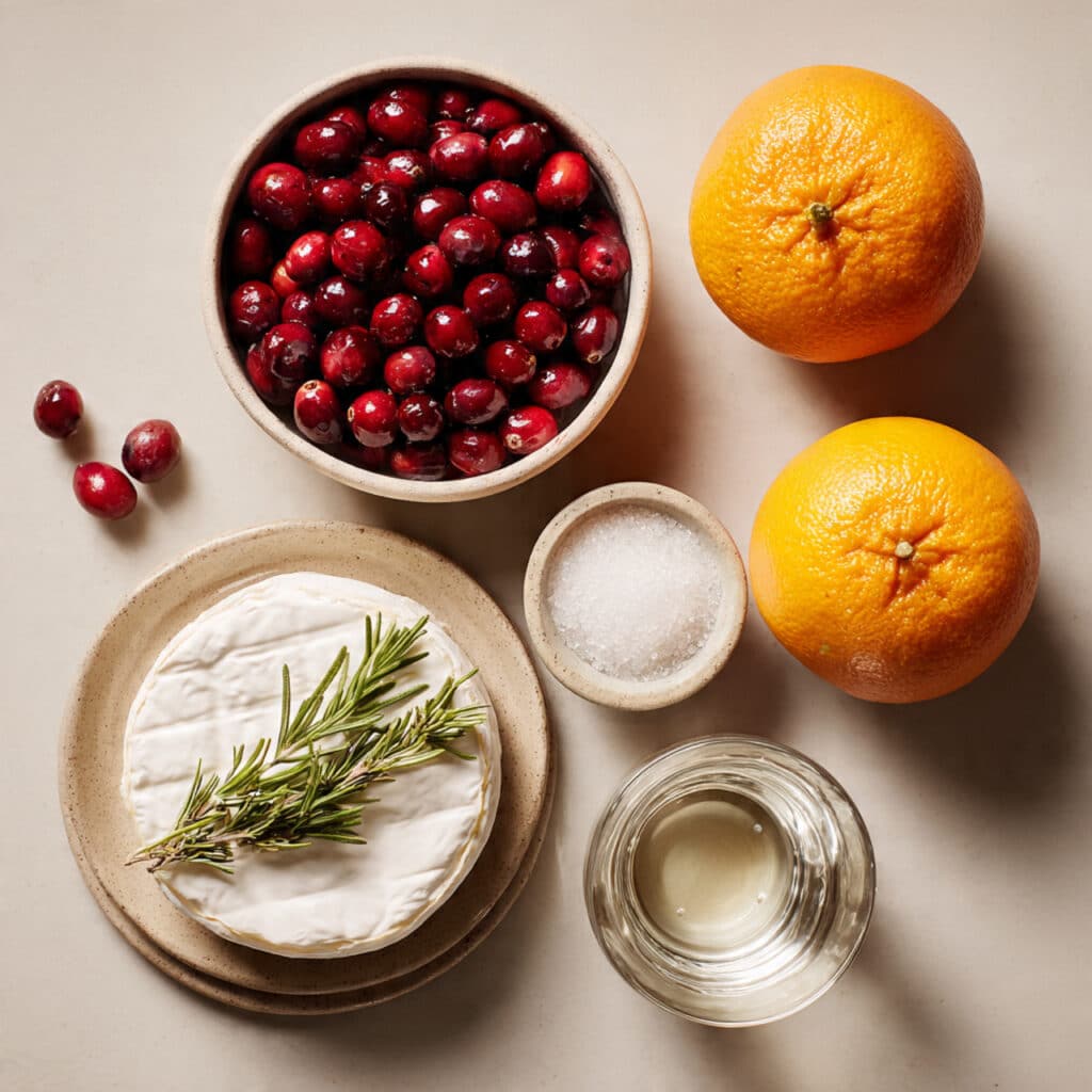 Ingredients in Baked Brie with Cranberry Orange Relish