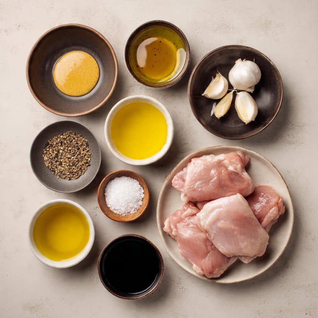 1. Chicken Thighs (bone-in, skin-on): 6 pieces — stays juicy during baking and absorbs flavor beautifully.