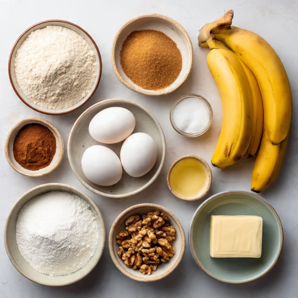 Ingredients in Banana Bread with Walnuts and Cinnamon