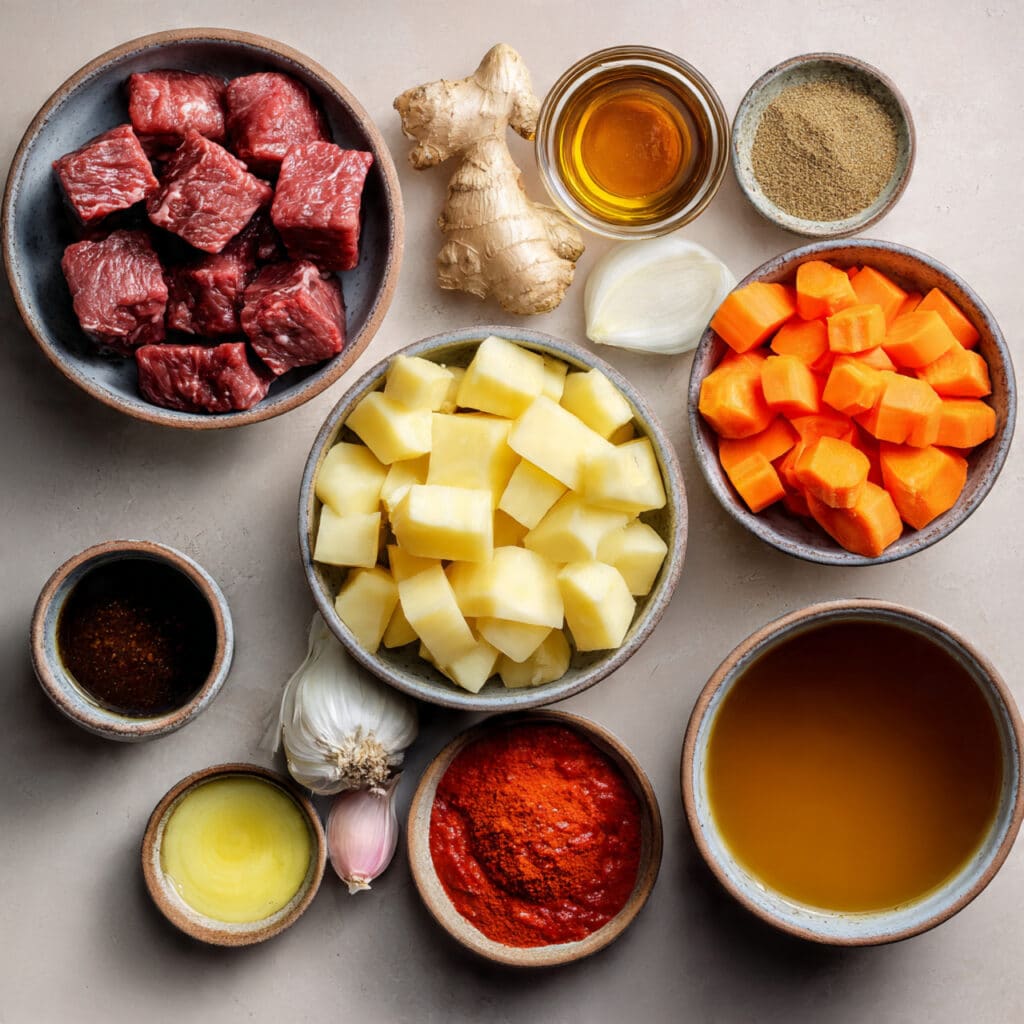 What makes this curry unforgettable is the contrast in textures and layers of flavor. The beef becomes melt-in-your-mouth tender while the potatoes stay creamy but firm. The sauce is thick and velvety, packed with rich spice and a subtle tang from the tomato paste. Each bite hits you with warmth, depth, and a hint of sweetness from the carrots.