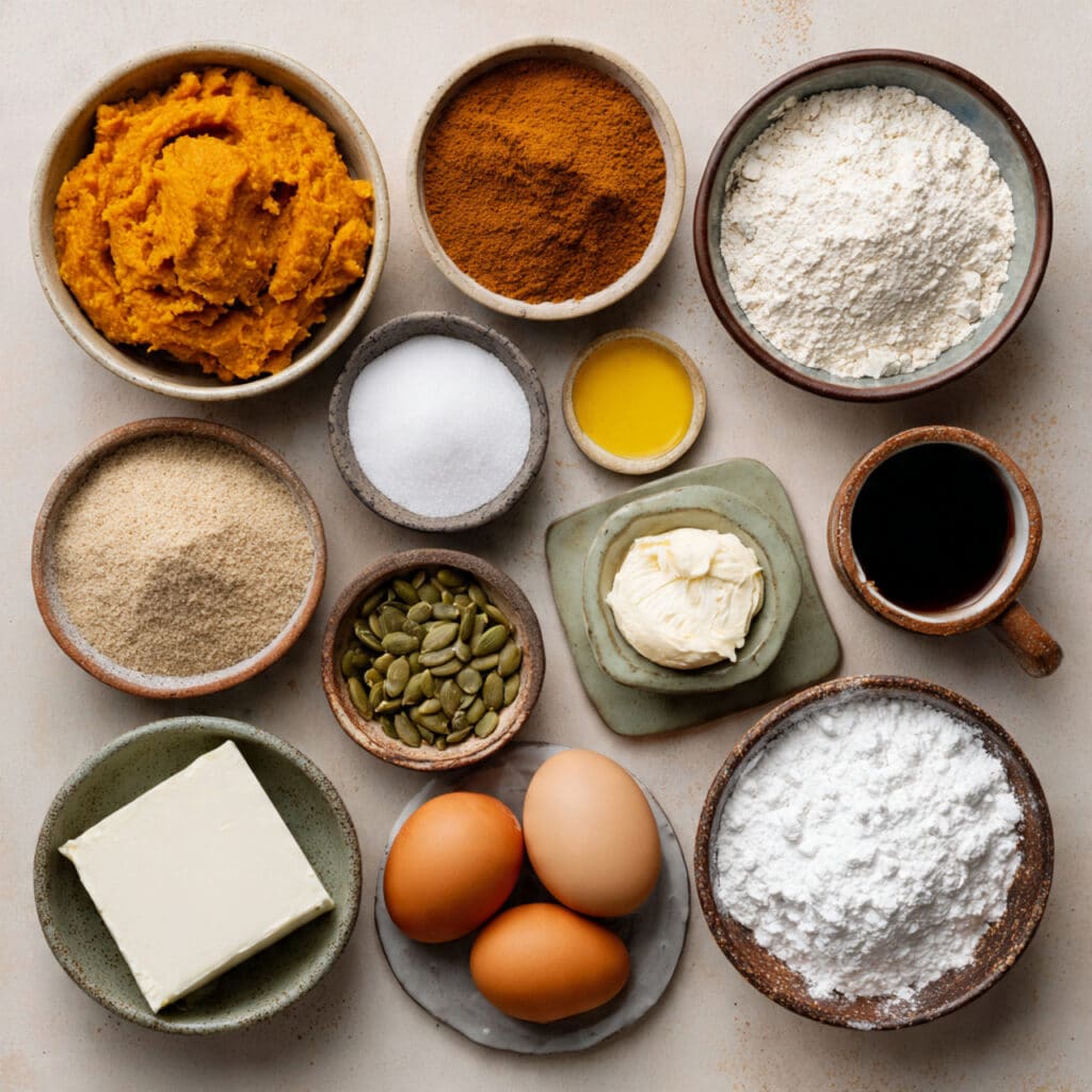 - Canned Pumpkin Puree: 1 cup — Brings moistness and earthy sweetness.