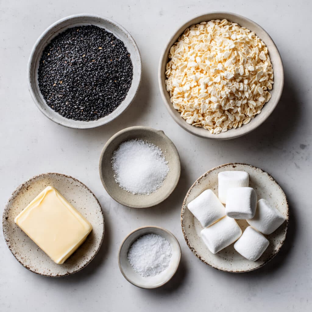 - Combine Ingredients: Measure the crispy rice cereal and toasted black sesame seeds into a large bowl so they are ready to go.
