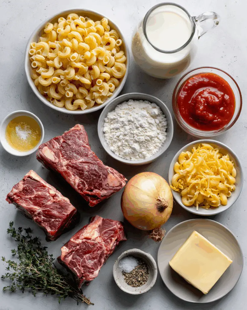 Keywords: braised short ribs, mac and cheese, comfort food, beef mac, cheesy pasta, slow cooked, dinner recipe, one pot meal