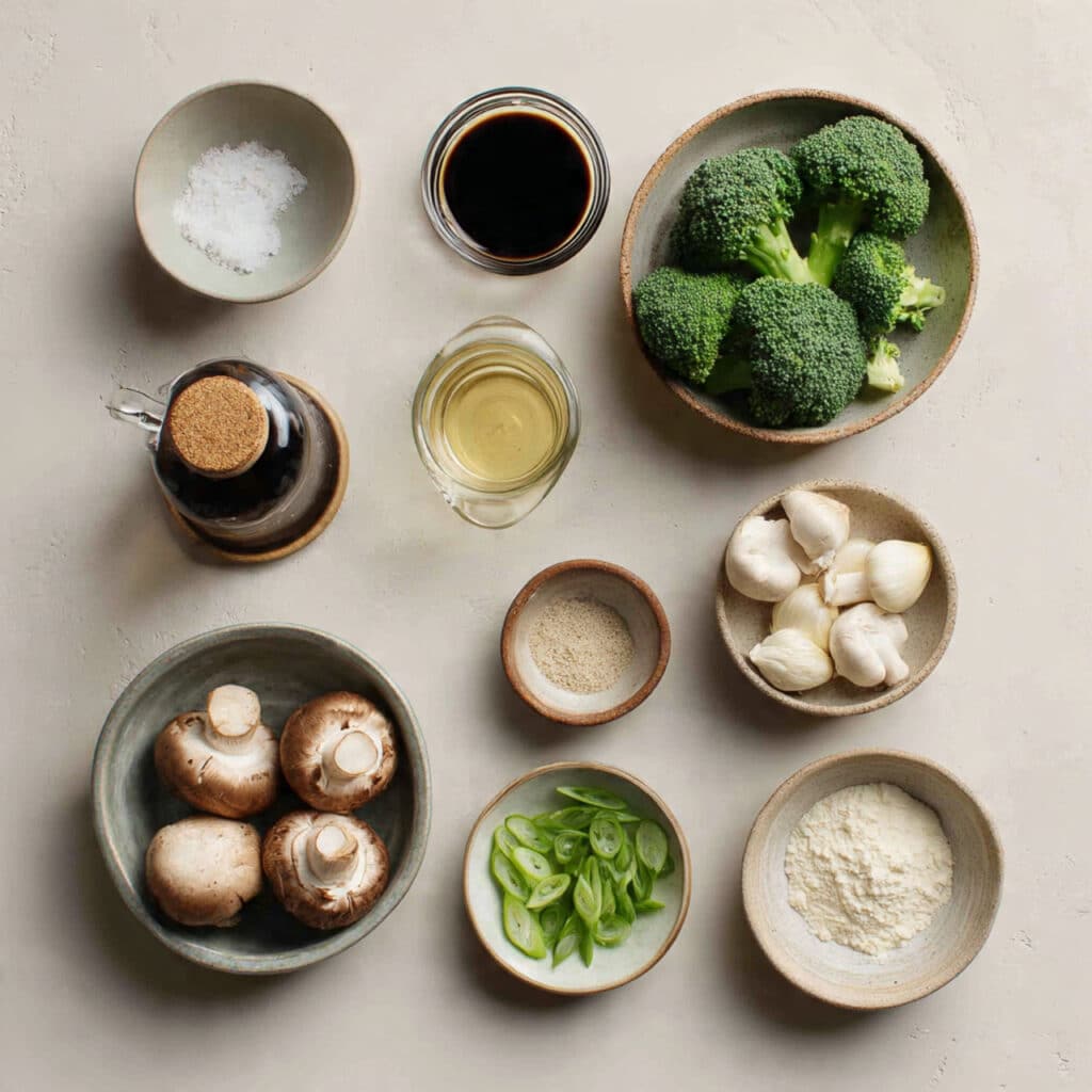 Keywords: broccoli and mushroom stir fry, easy vegetable stir fry, vegan stir fry recipe, quick healthy dinner, garlic soy vegetables