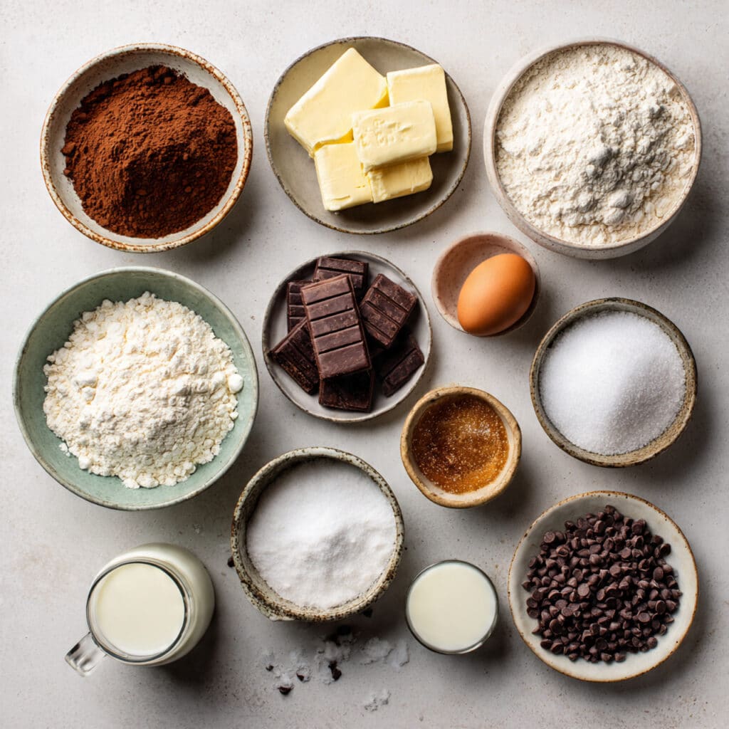 - Unsweetened Cocoa Powder: ½ cup — gives the cookies their deep chocolate flavor.