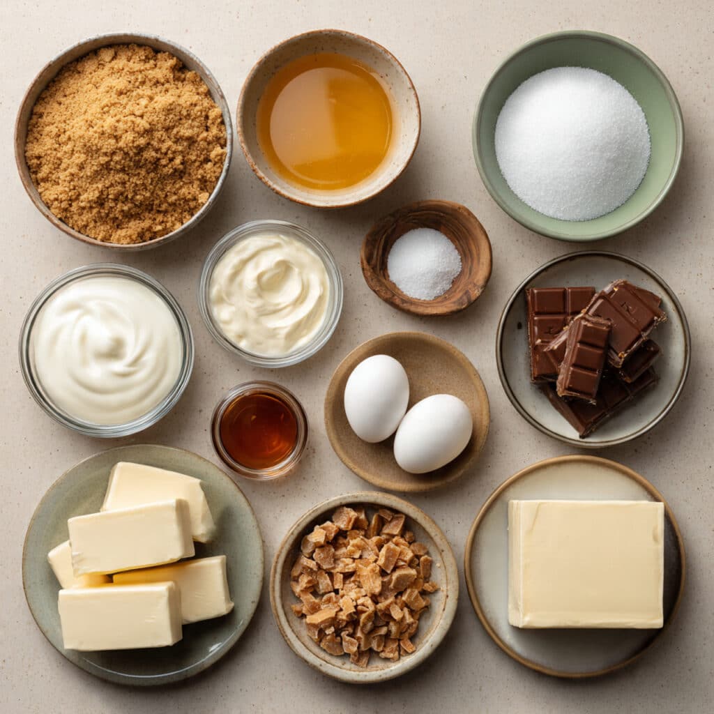 Now the fun really begins, because this ingredient list is where all those layers start to make sense. Every piece brings something useful, from the buttery crunch at the base to the creamy center and that irresistible candy finish.