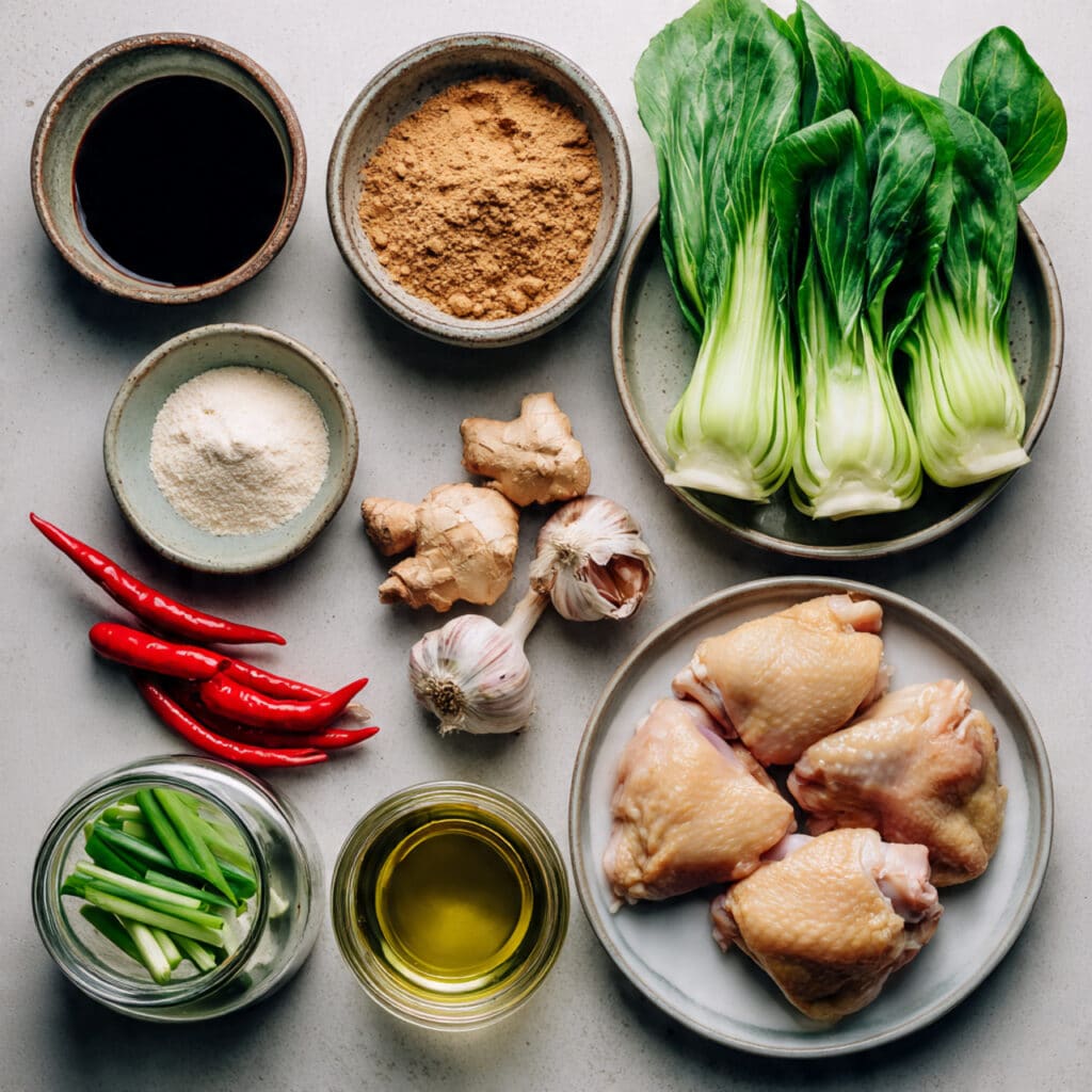Ingredients in Caramelised Soy Chicken with Garlic Ginger Broth
