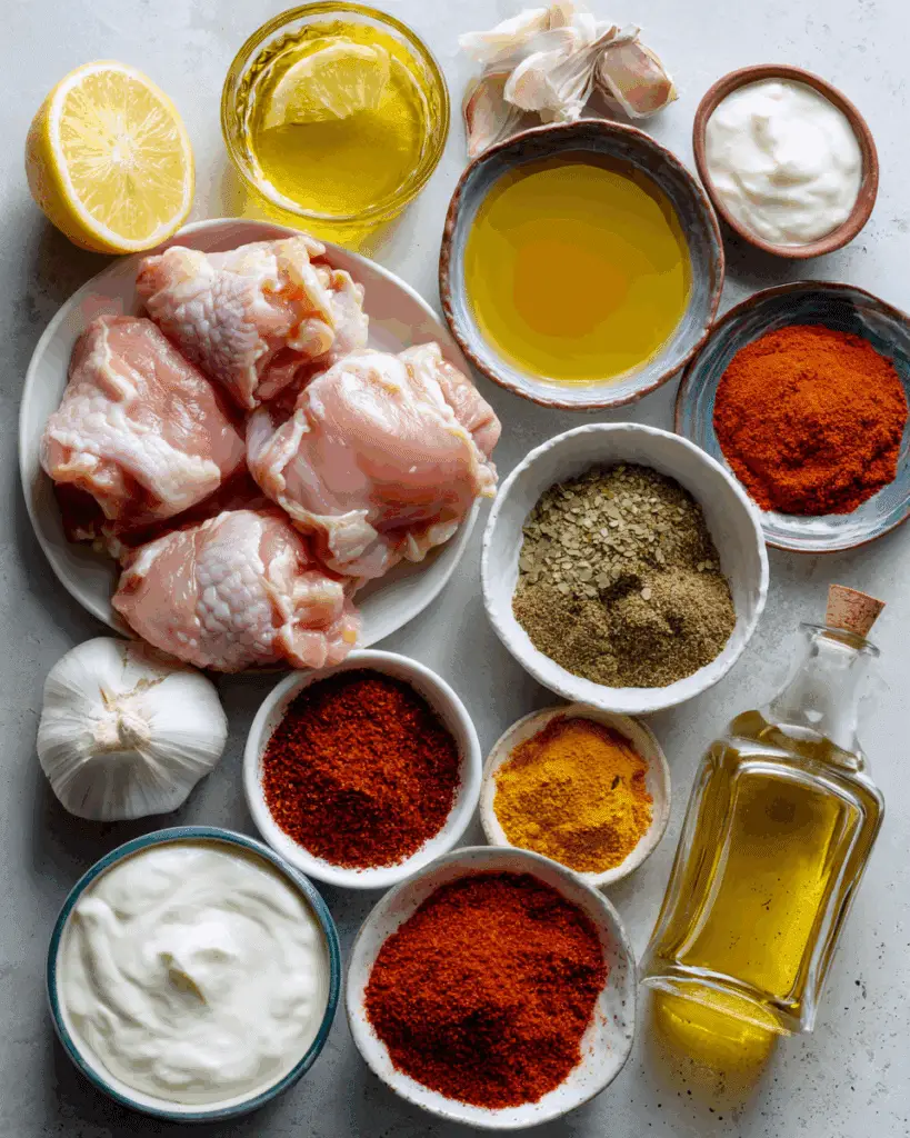 - Plain Yogurt: 1 cup. Acts as the base for the marinade, tenderizing the meat.