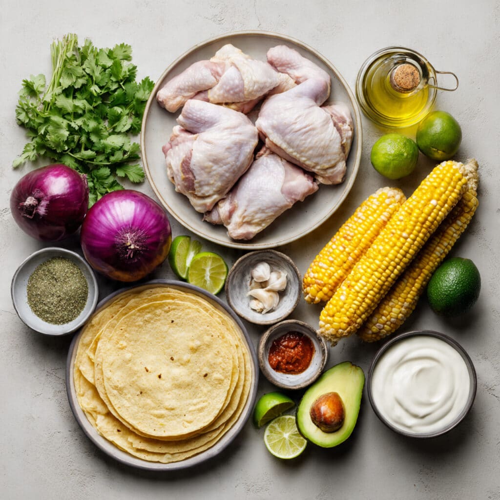 - Grill or sear chicken 6–8 minutes per side until cooked and slightly charred. Rest, then slice. Char corn and mix with onion, cilantro, lime juice, and salt.