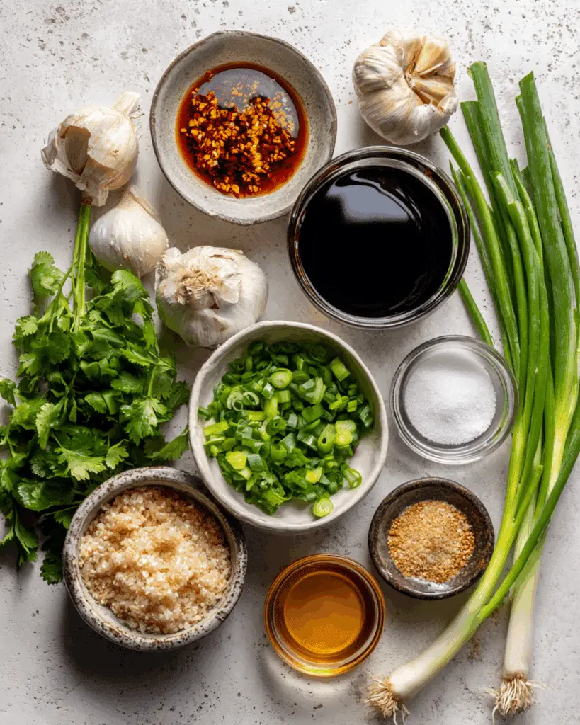 - Green Onions: 4 stalks, finely sliced. Brings freshness and crunch.