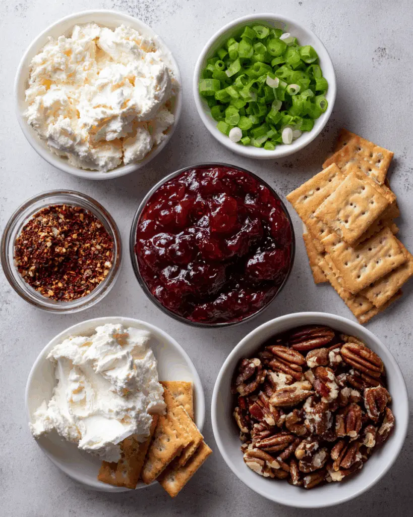 This dip is all about contrast. The cream cheese melts into a velvety base while the cranberry topping stays bright and slightly sticky. Pecans add a welcome crunch, and the green onions cut through with freshness. Every bite is creamy, tangy, sweet, and just a little spicy.