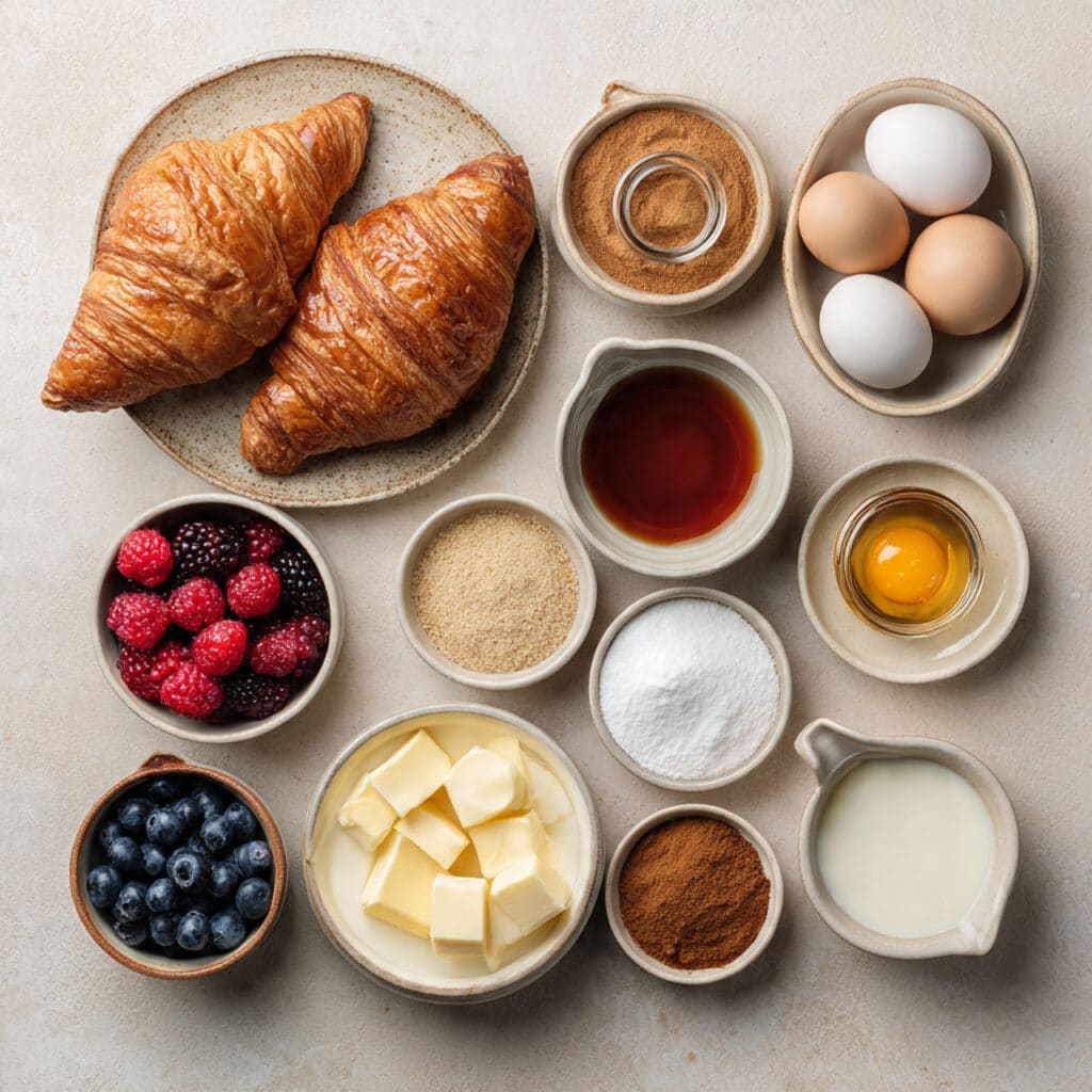Croissants: These flaky pastries absorb the custard like a dream while holding their shape. They crisp beautifully and give each bite a buttery crunch.