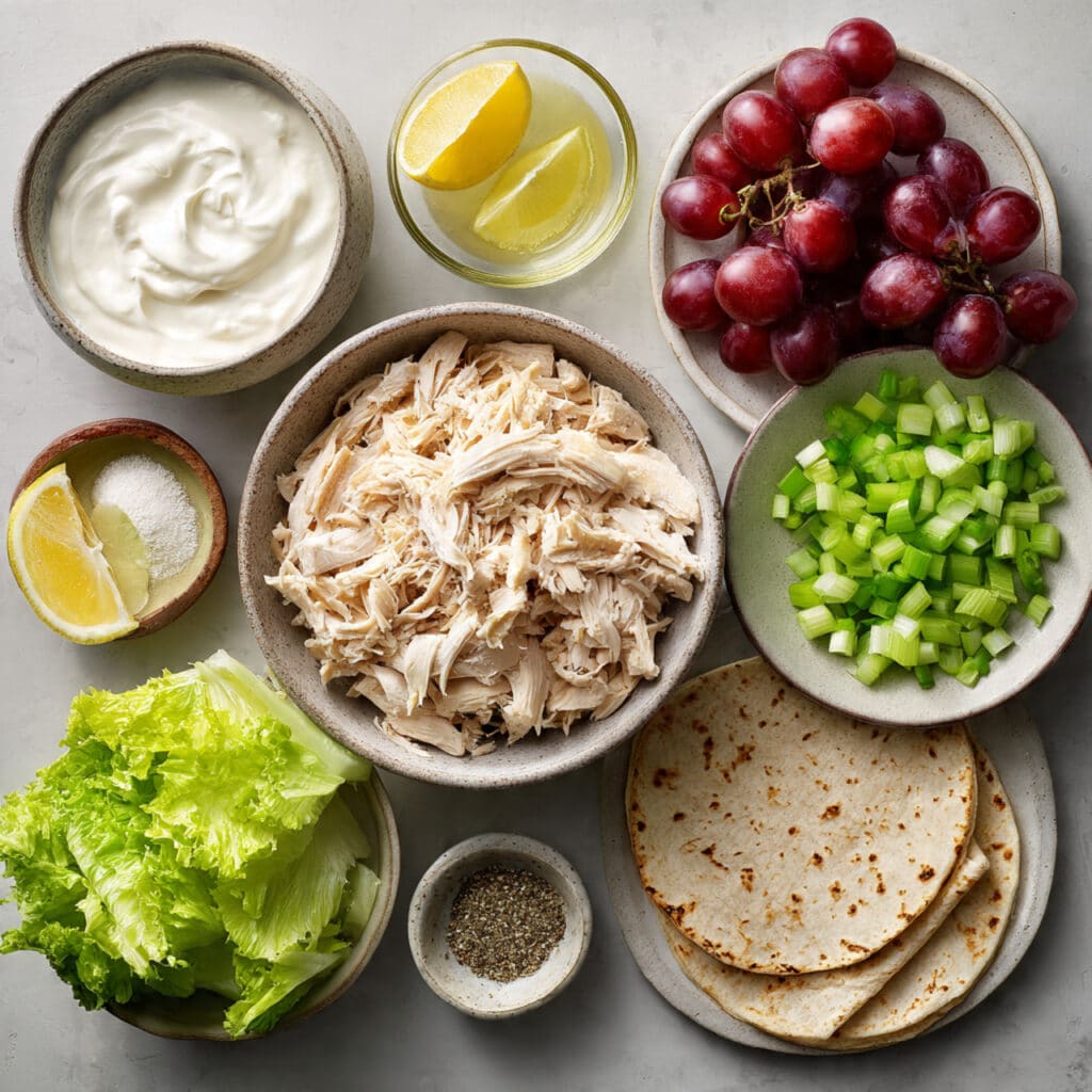 Ingredients in Creamy Chicken & Grape Yogurt Wraps