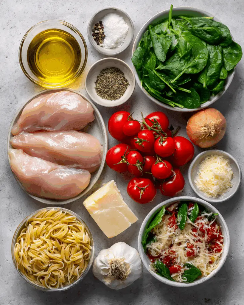- Boneless Skinless Chicken Breasts: 2 large – provides juicy protein and gets beautifully golden when seared.