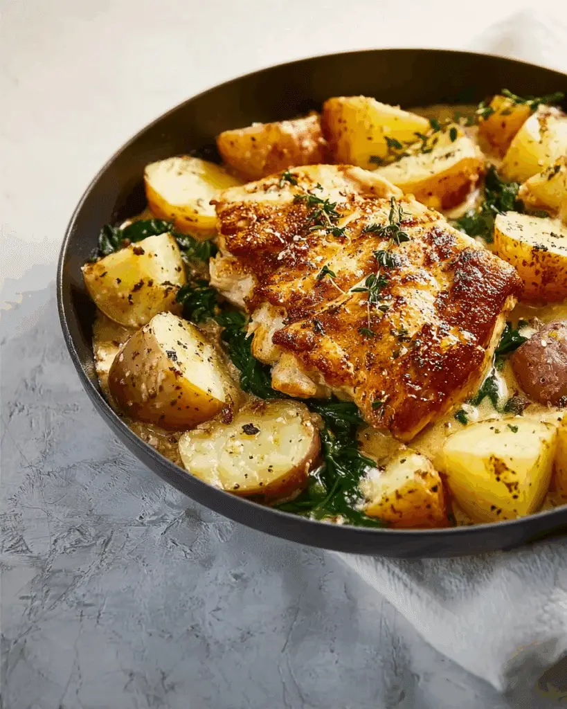This recipe was born out of the desire to bring together two family favorites: creamy garlic chicken and buttery roasted potatoes. Growing up, Sundays often meant a big skillet meal that made everyone gather around, spoons clinking, and laughter echoing. That memory sparked this recipe, marrying rustic potatoes with a restaurant-worthy sauce, giving you comfort and elegance all in one bite.