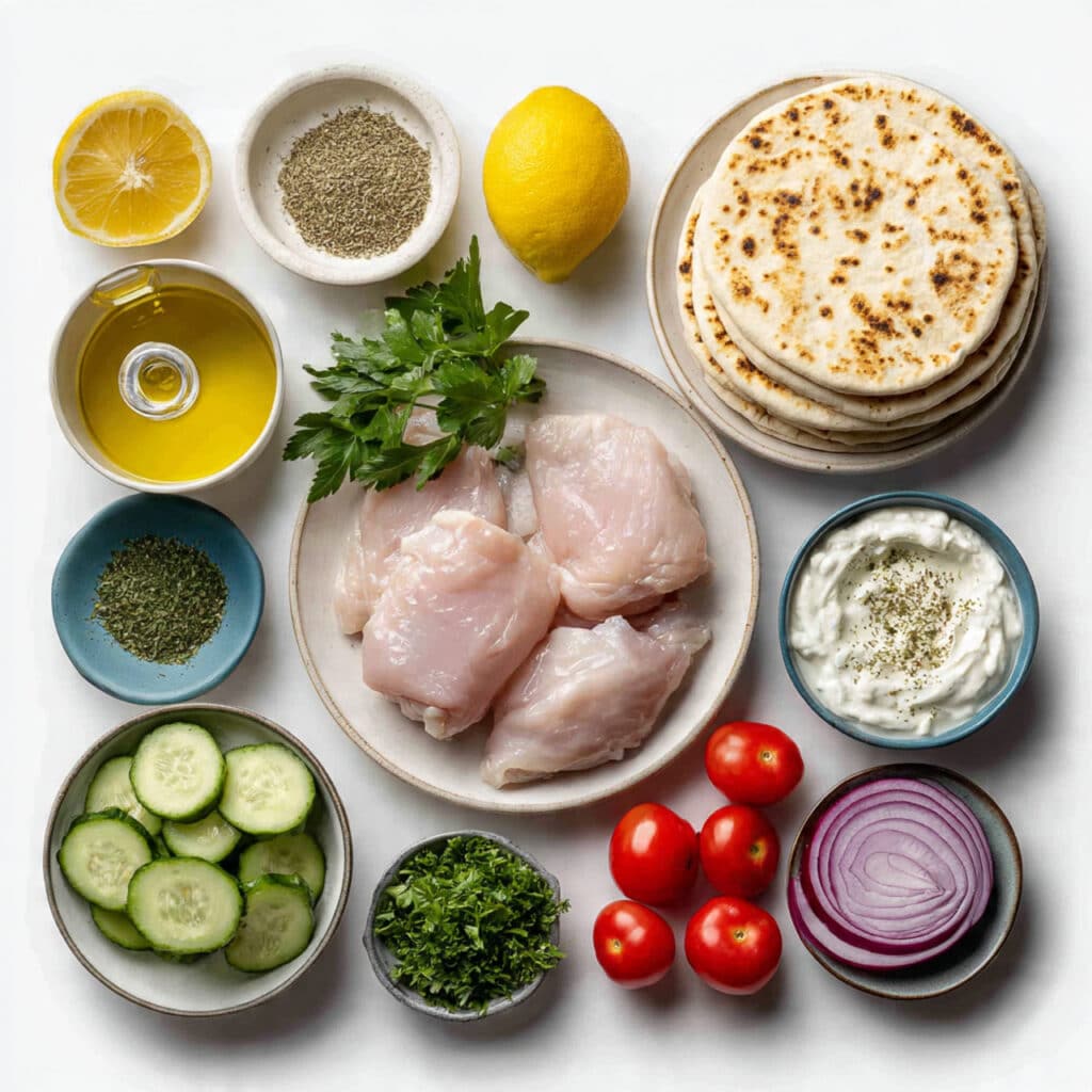 Tender, juicy chicken slow cooked with garlic, lemon, and oregano, tucked into soft pita bread with fresh vegetables and creamy tzatziki for a bright Mediterranean meal