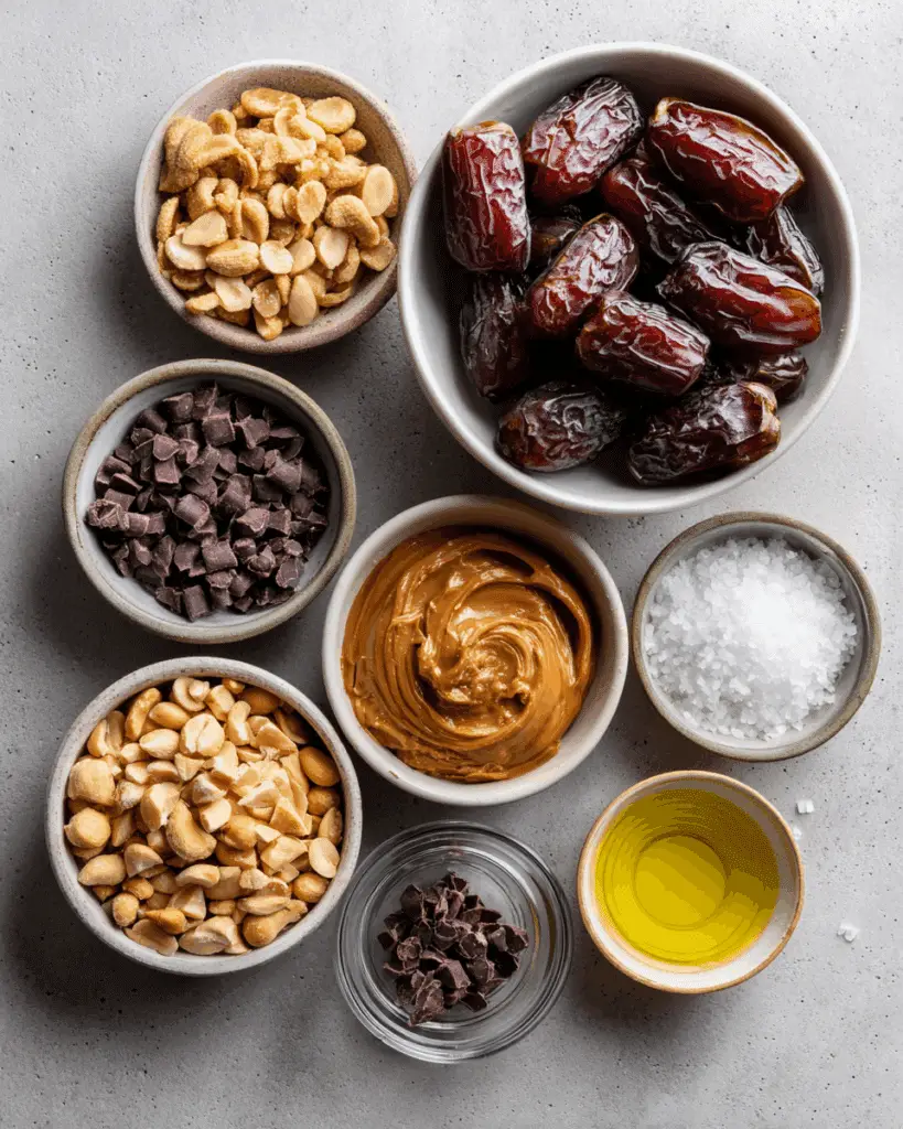 - Medjool dates (about 10–12 large = approximately 250 g): These provide the sweet, caramel‑like chewy base that holds everything together.