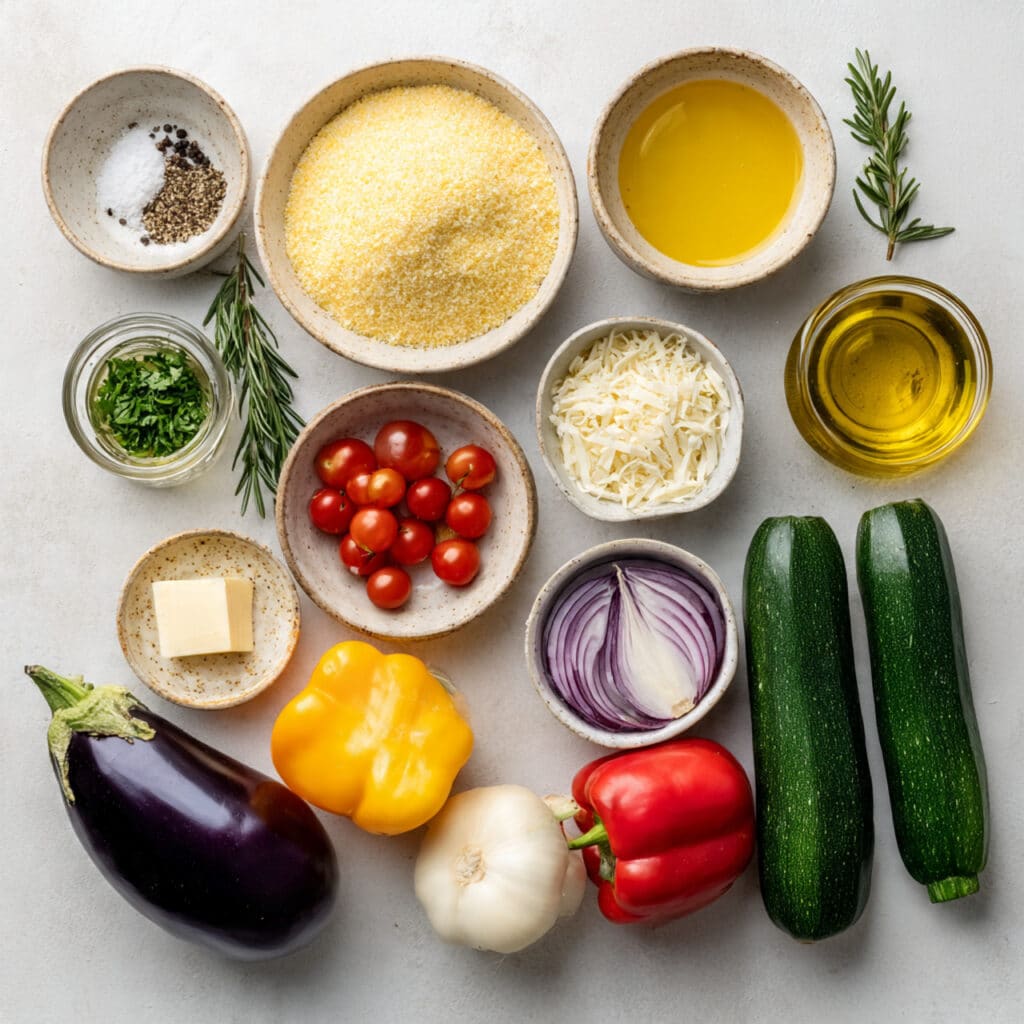 Ingredients in Delicious Creamy Polenta with Roasted Veggies