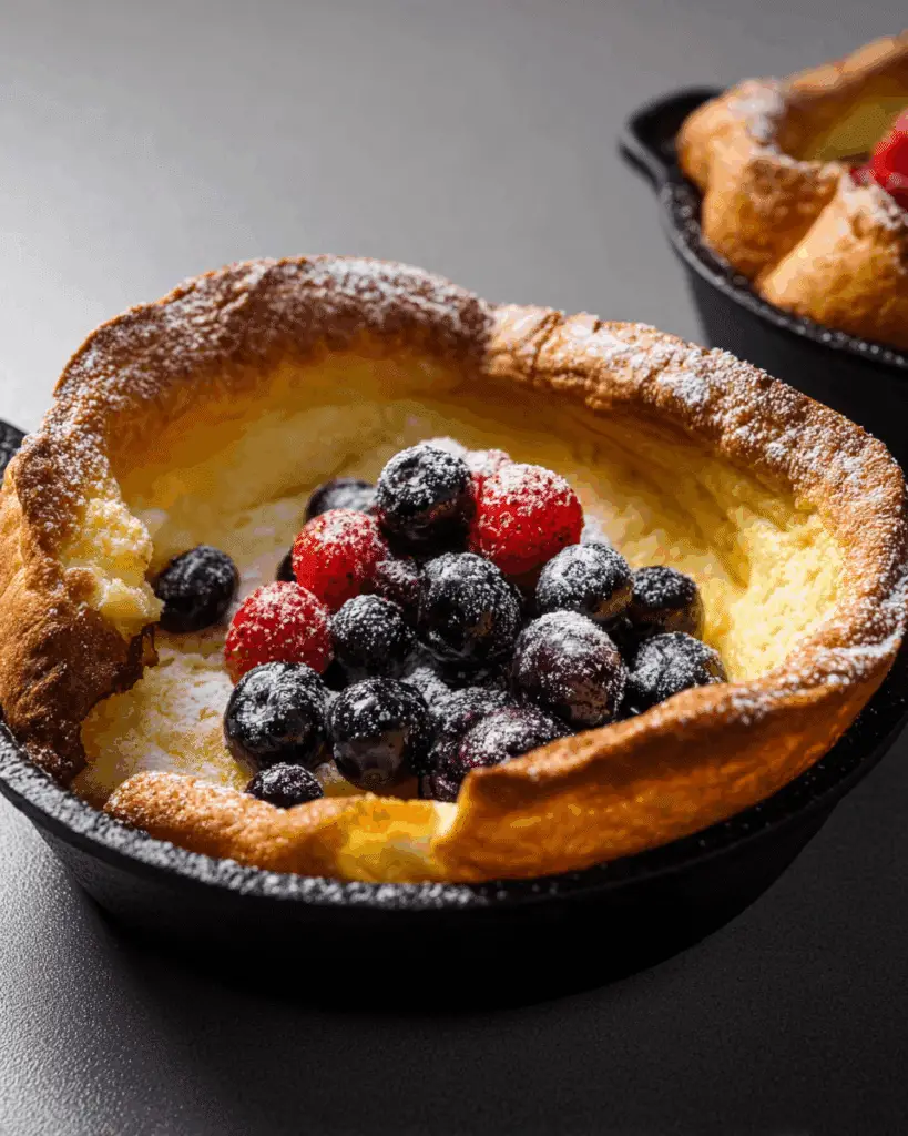 Dutch Baby Bites boast golden, crisp edges that give way to soft, eggy centers. Their subtle sweetness and rich vanilla aroma are complemented perfectly by any topping. The heat of the pan creates a dramatic rise, giving each bite its signature puff and airy chew.