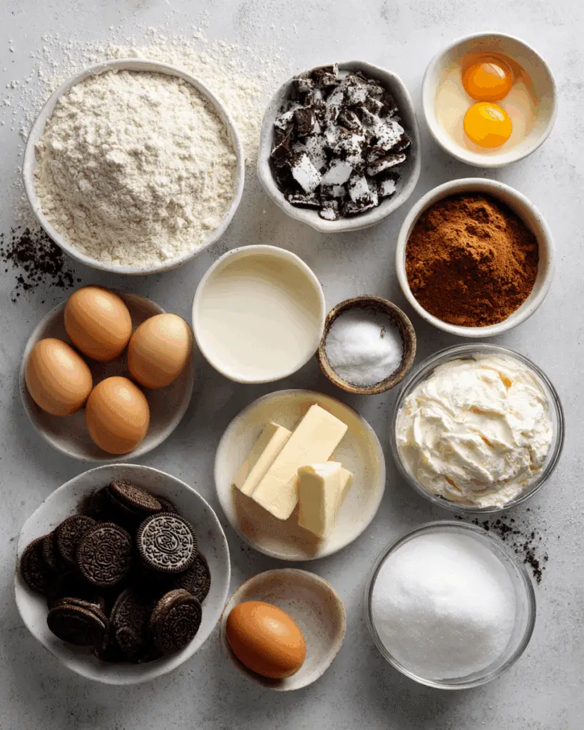 - Crushed Oreo cookies: 1 1/2 cups – Brings that signature chocolate crunch to every bite.