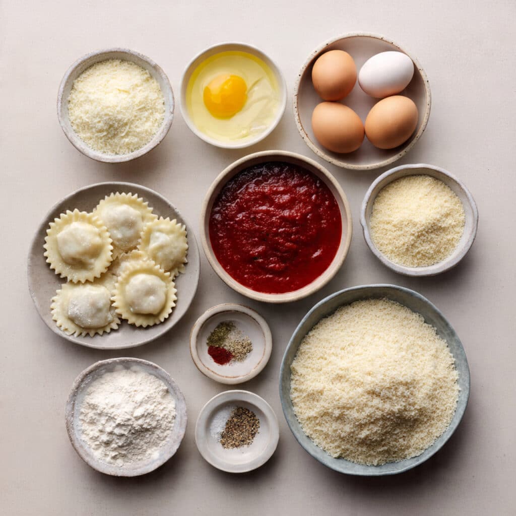 - Assemble the Dish: Dip each ravioli into flour, then egg, then breadcrumb mixture, making sure it is fully coated.