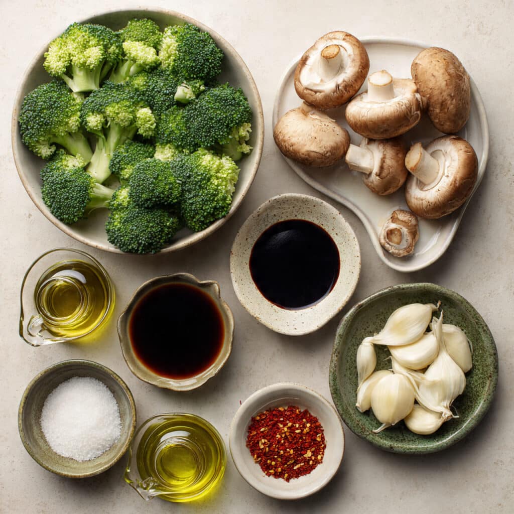 Mushrooms: Cremini mushrooms bring a meaty texture and earthy flavor that balances the crisp broccoli perfectly.