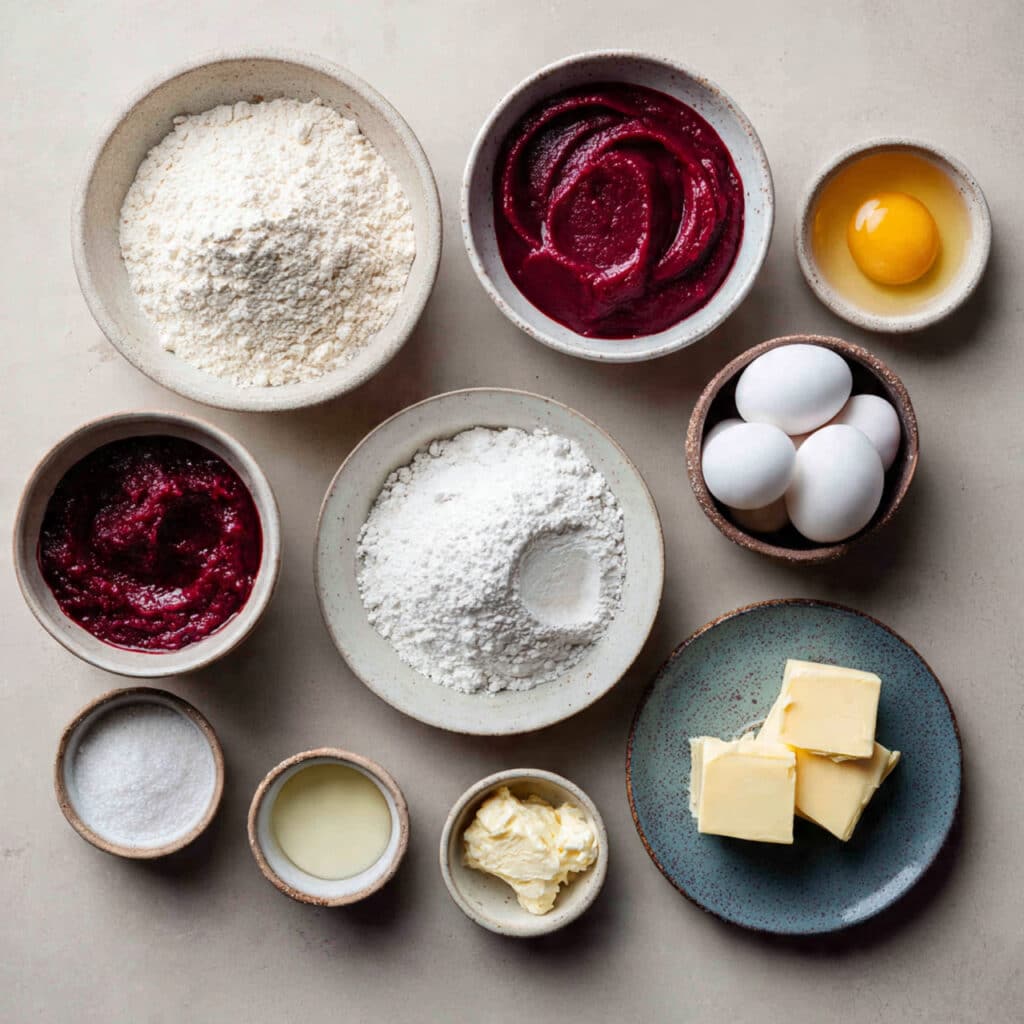 - Cooked and Pureed Beets: 1 cup – Adds natural moisture, sweetness, and a vibrant hue.