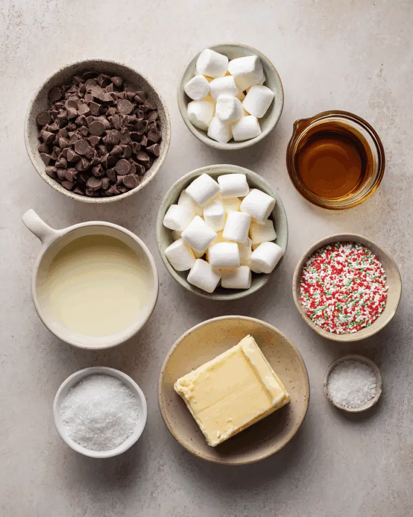 • Optional Toppings: Crushed peppermint, sprinkles, or extra marshmallows – Add festive flair and fun textures.