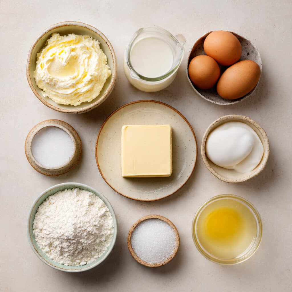 - Eggs: 4 large, separated, the yolks add richness while the whites create the airy texture