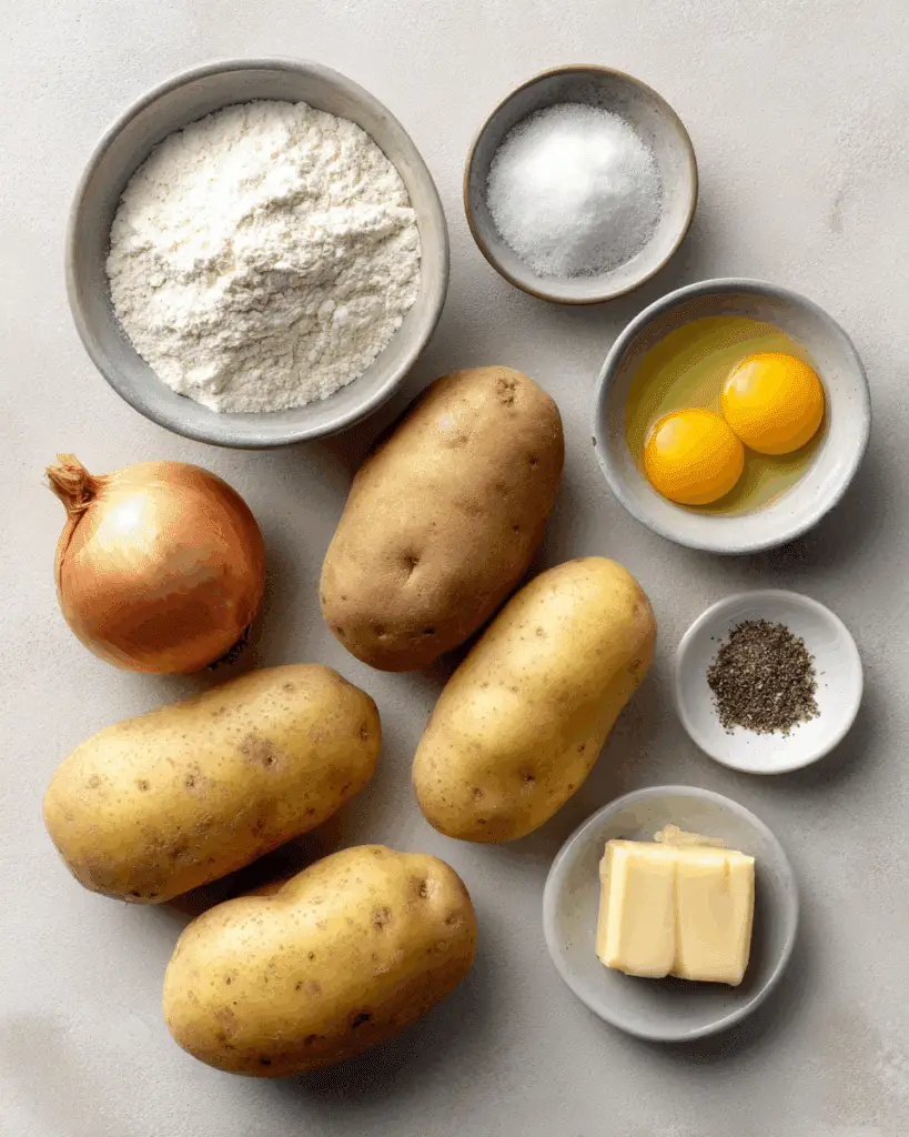 - Combine Ingredients: Mix grated potatoes and onions in a bowl. Squeeze out moisture, then add flour, eggs, salt, and pepper. Mix well.