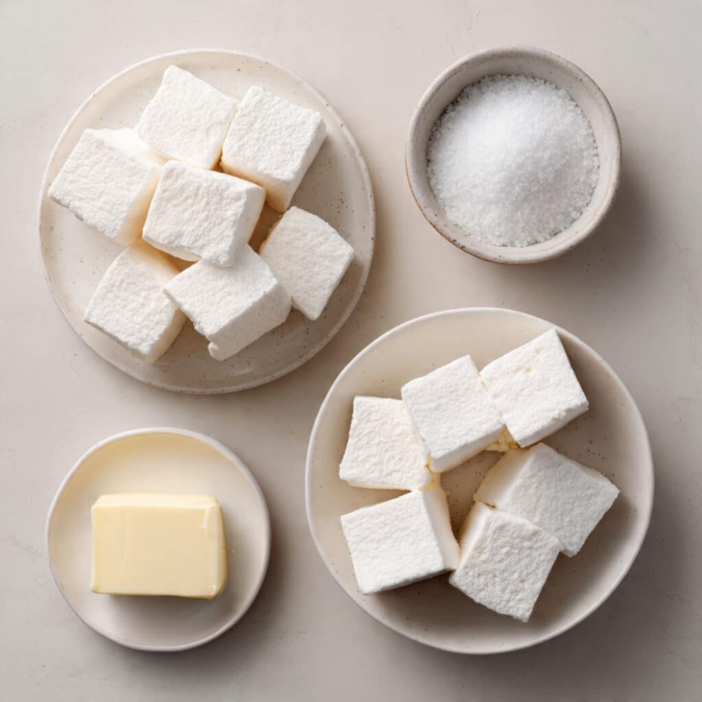 The ingredient list is wonderfully short, but each piece plays an important role in creating that glossy, golden finish. The marshmallows give the body and sweetness, the butter helps the pan stay lightly coated, and the salt balances all that sugary richness.