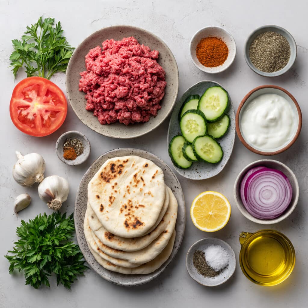 - Finishing Touches: Warm the pita bread, then fill with beef, tomatoes, cucumbers, red onion, parsley, and drizzle with yogurt sauce.