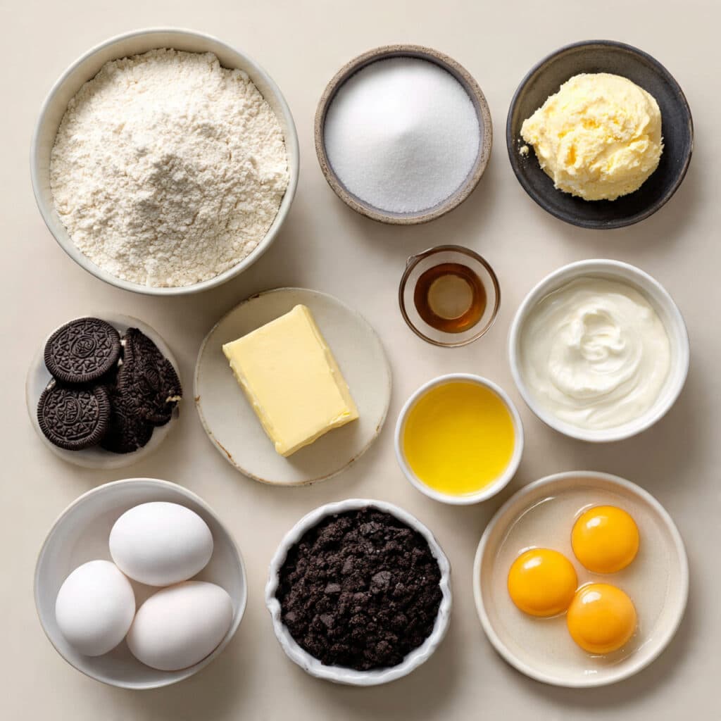 Crushed Oreos: The real stars here. They soften slightly as they bake, melting into the cake while still leaving little pockets of crunch.
