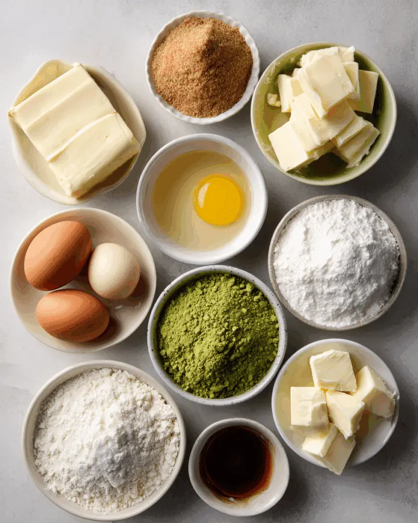 Ingredients in NYC Style Matcha White Chocolate Chunk Cookies