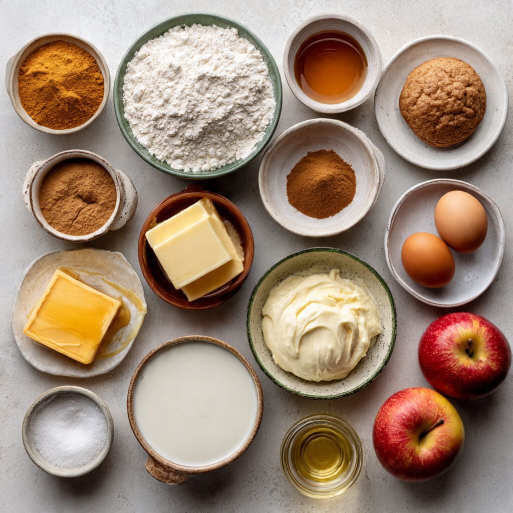 Ingredients in Pumpkin Shortcakes with Cinnamon Apples and Maple Whipped Cream Cheese