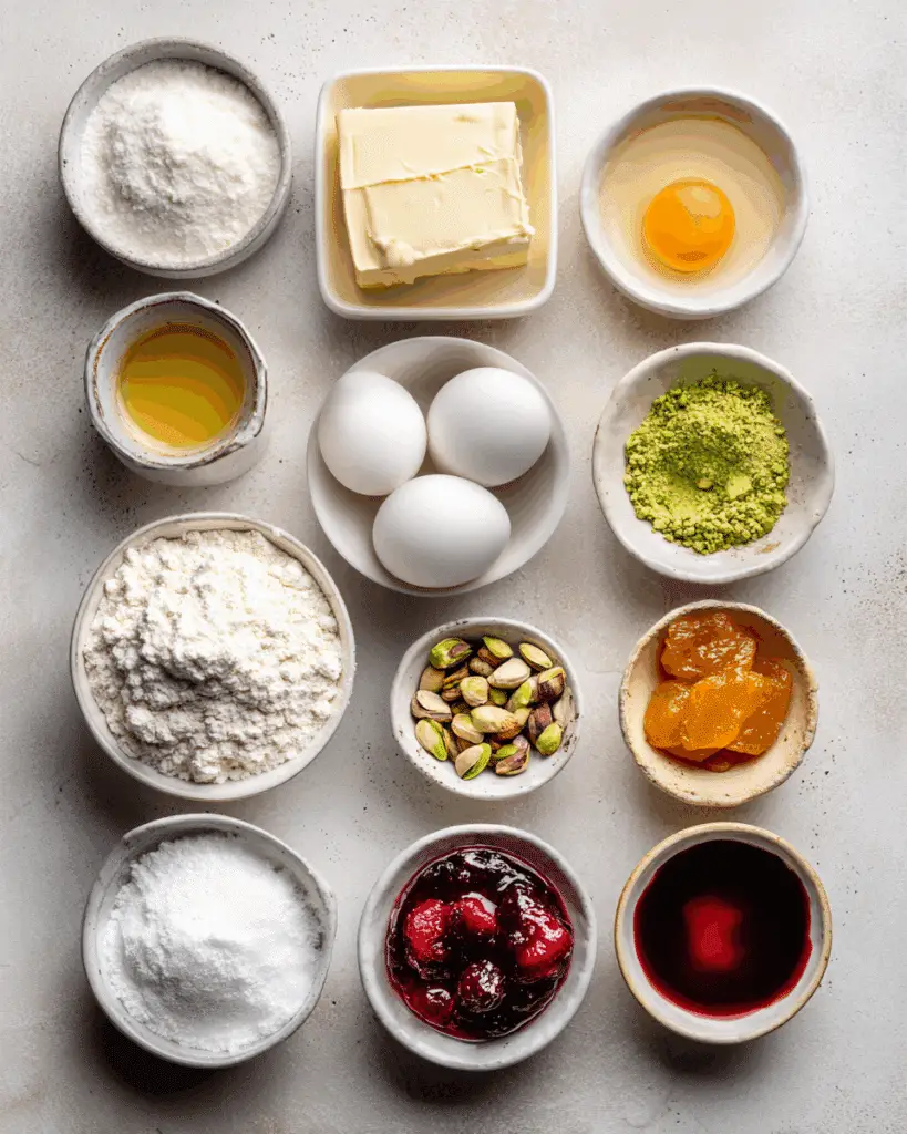 Ingredients in Raspberry Pistachio Frangipane Tart