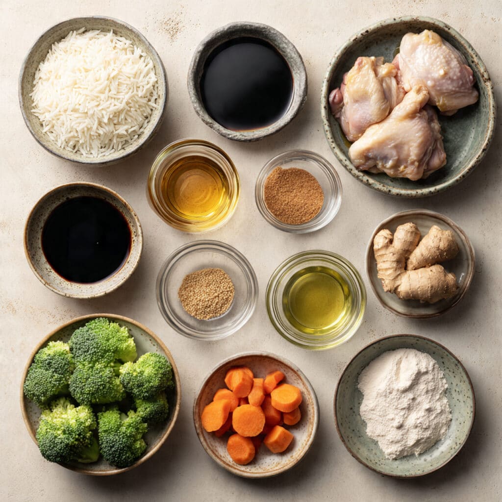 Ingredients in Rice Bowl with Teriyaki Chicken