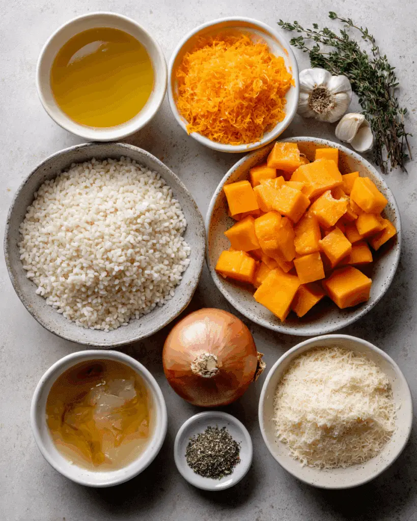 Butternut Squash: Naturally sweet with a silky texture when cooked, it melts into the risotto beautifully and gives it its signature flavor.
