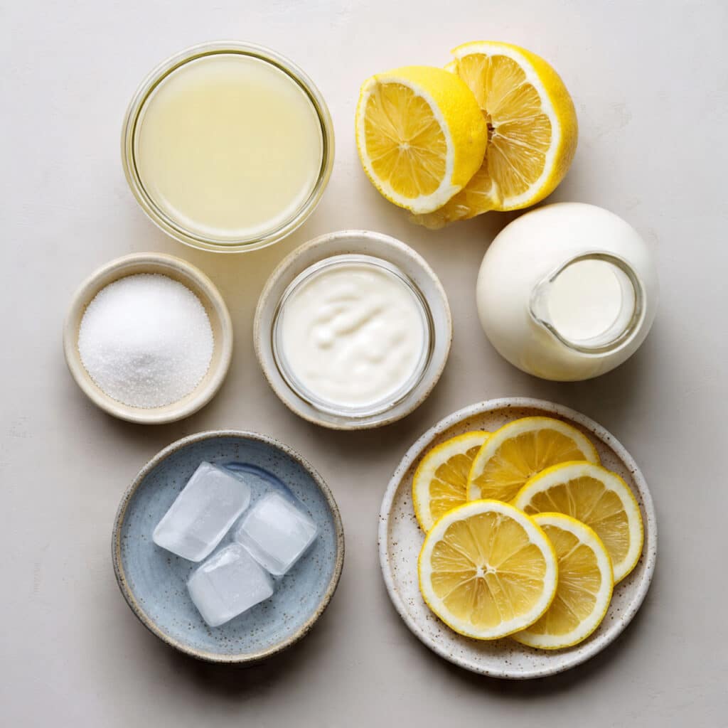 Picture this. Fresh lemon juice, just squeezed, mingling with sugar until it softens into a sweet tangy base. Then heavy cream folds in, turning everything silky and pale, almost like sunshine captured in a glass. Add ice and give it a good whip, and you get that airy texture that makes each sip feel light but satisfying.