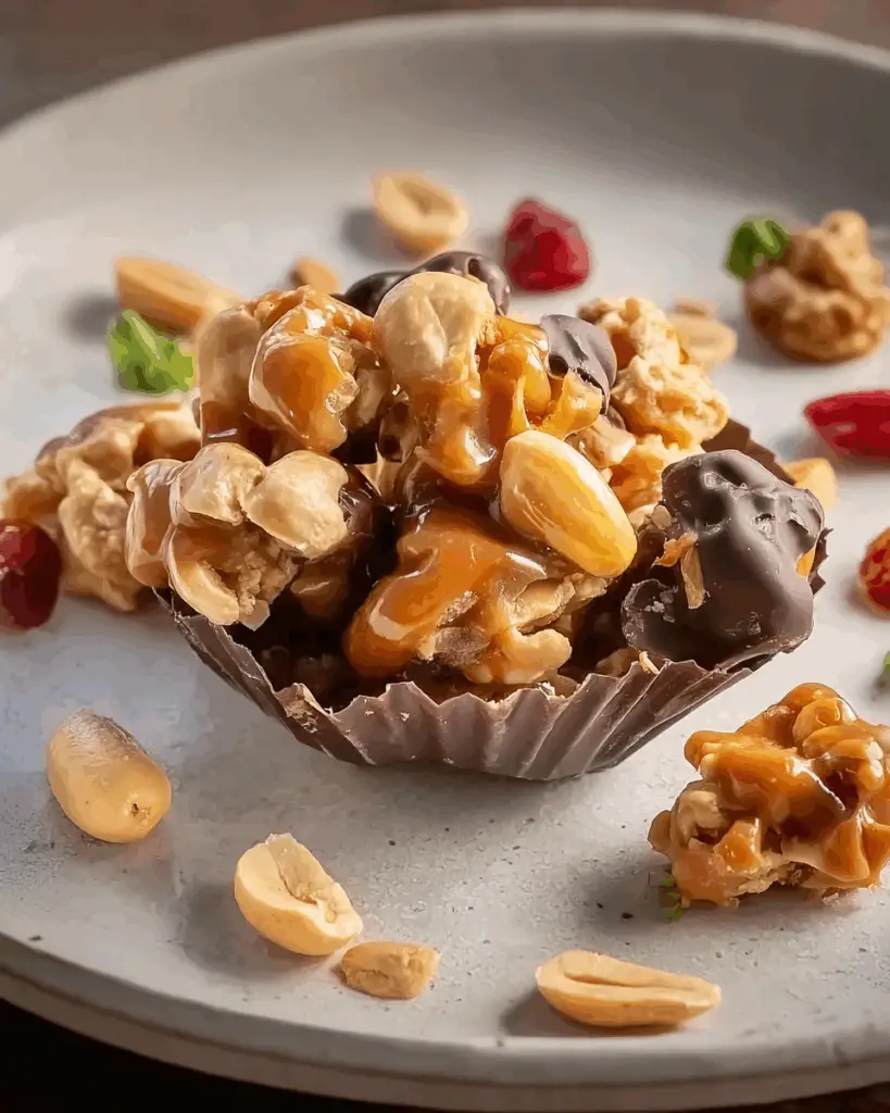 Sweet, salty, and delightfully crunchy, these Salted Peanut Caramel Clusters combine roasted peanuts, creamy caramel, and rich chocolate into irresistible bite-sized treats.