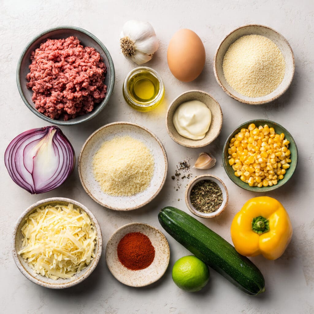 - Combine Ingredients: In a bowl, mix ground beef, breadcrumbs, egg, garlic, half of the corn, chili powder, paprika, and a pinch of salt until well combined
