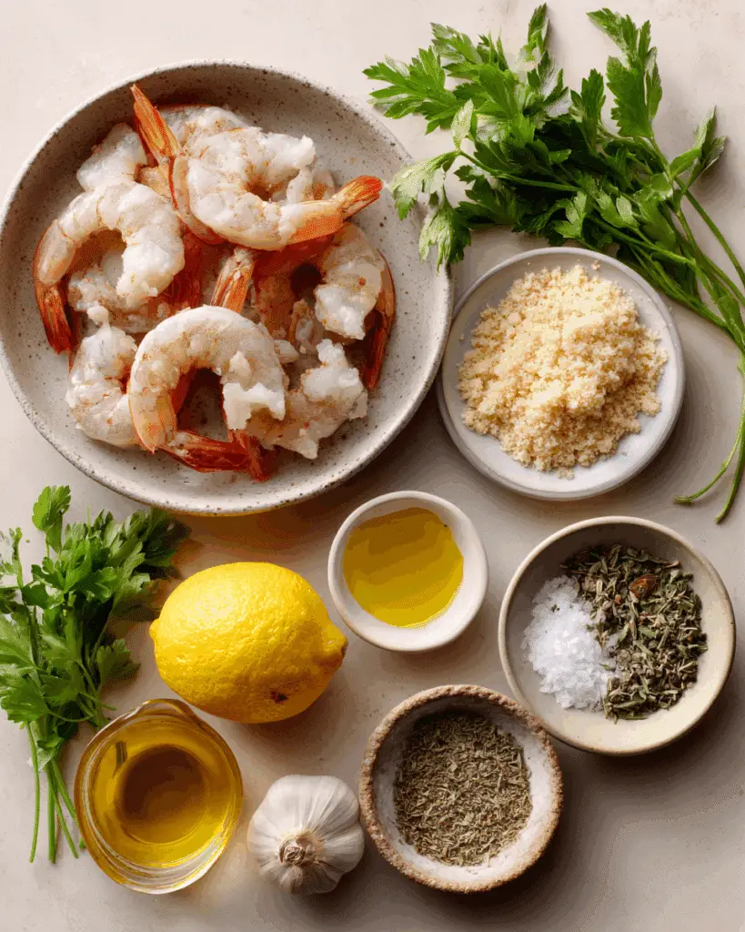 Shrimp: The protein base of this dish, shrimp should be firm and plump. They cook quickly and carry the flavors of garlic, herbs, and lemon like a dream.