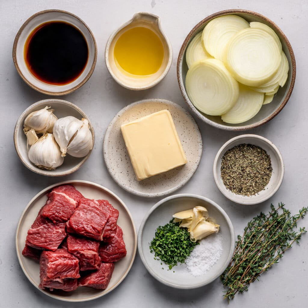 - Fresh thyme leaves: 1 teaspoon, this brings a gentle earthy note that fits beautifully with beef and onions.