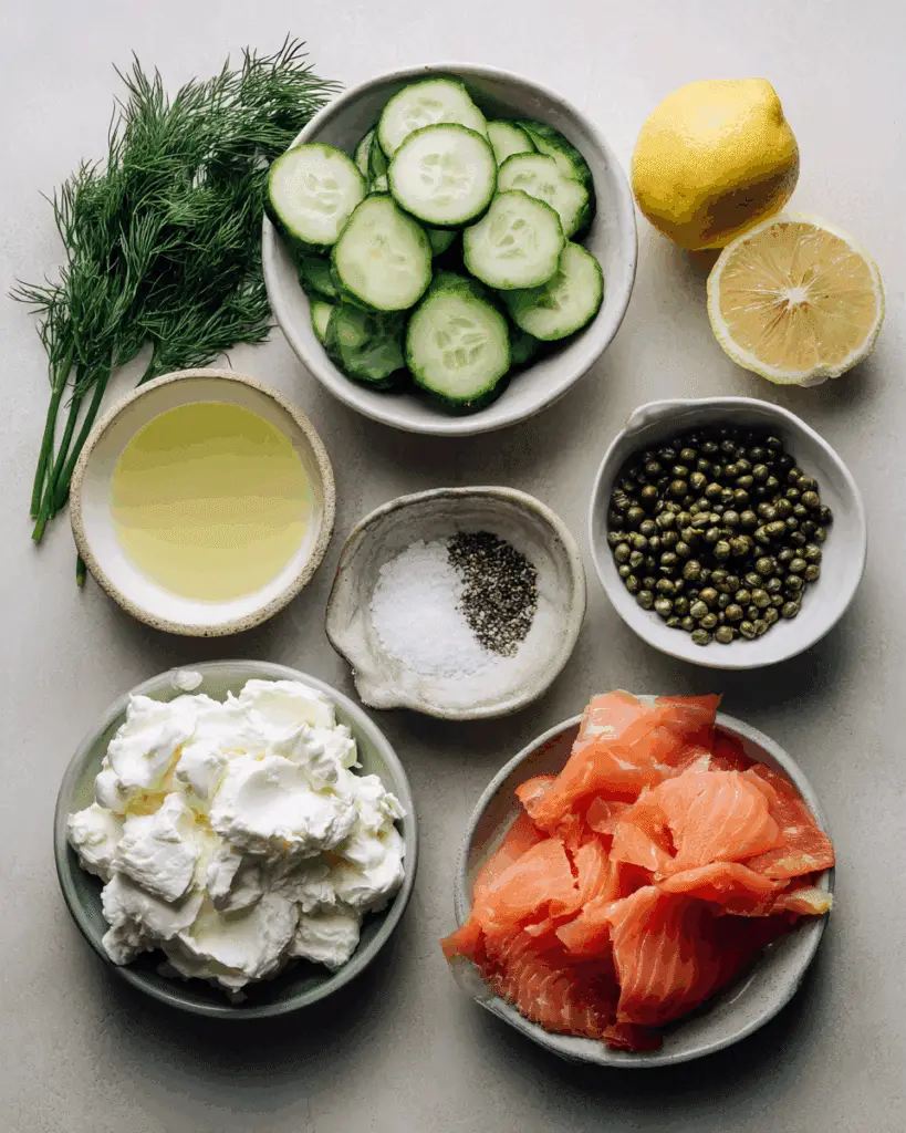 - Smoked Salmon: 8 ounces, sliced. Adds rich, savory depth with its soft, buttery texture.