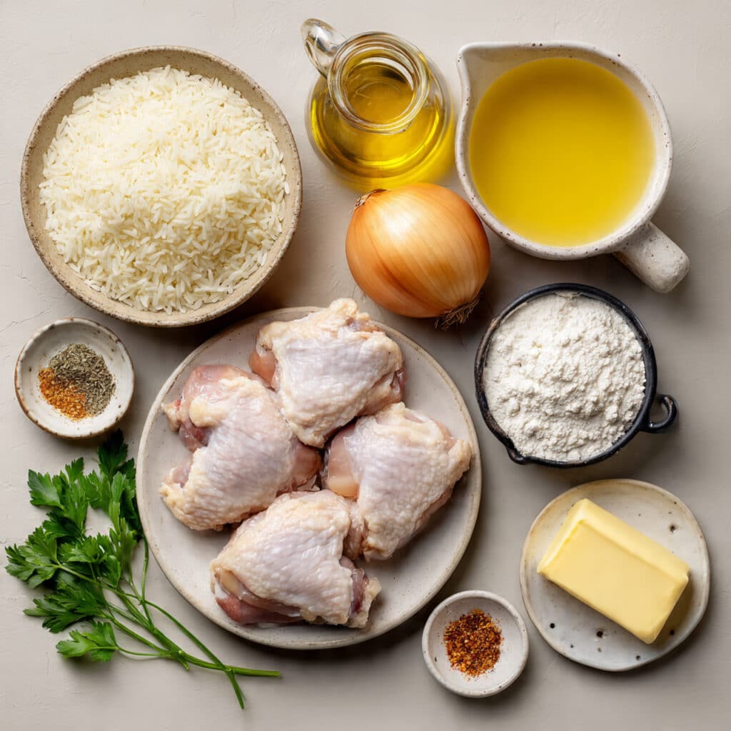 - Chicken Thighs (bone-in, skin-on): 6 pieces. They stay juicy and absorb the gravy beautifully.