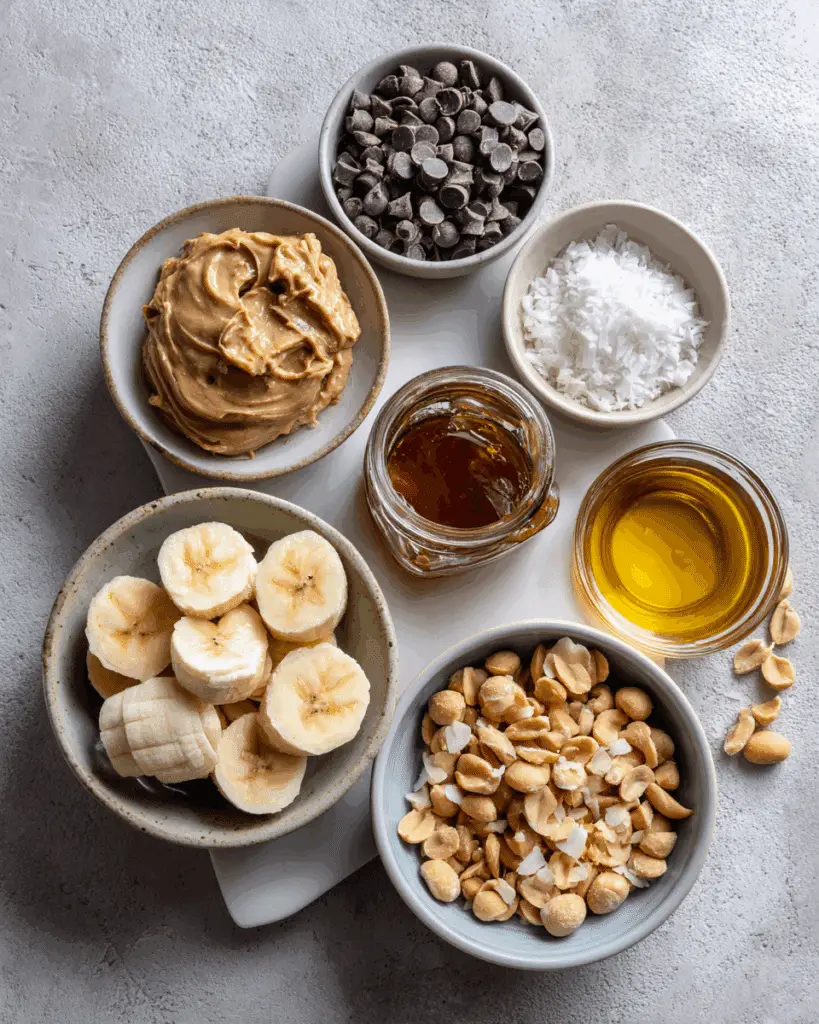 - Bananas: 2 large, ripe but firm. These form the fresh, naturally sweet base of your bark.