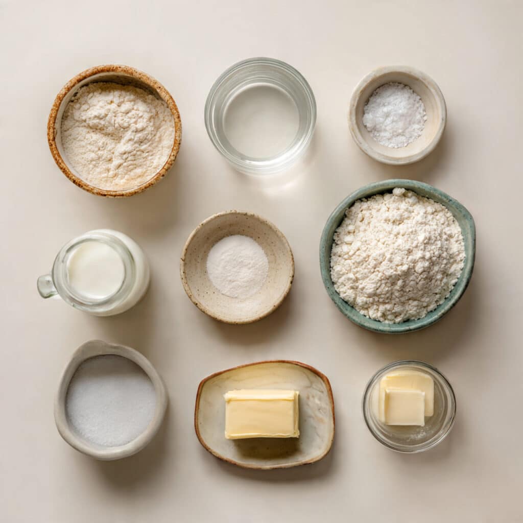 - Warm Water: ½ cup, hydrates the dough and activates fermentation