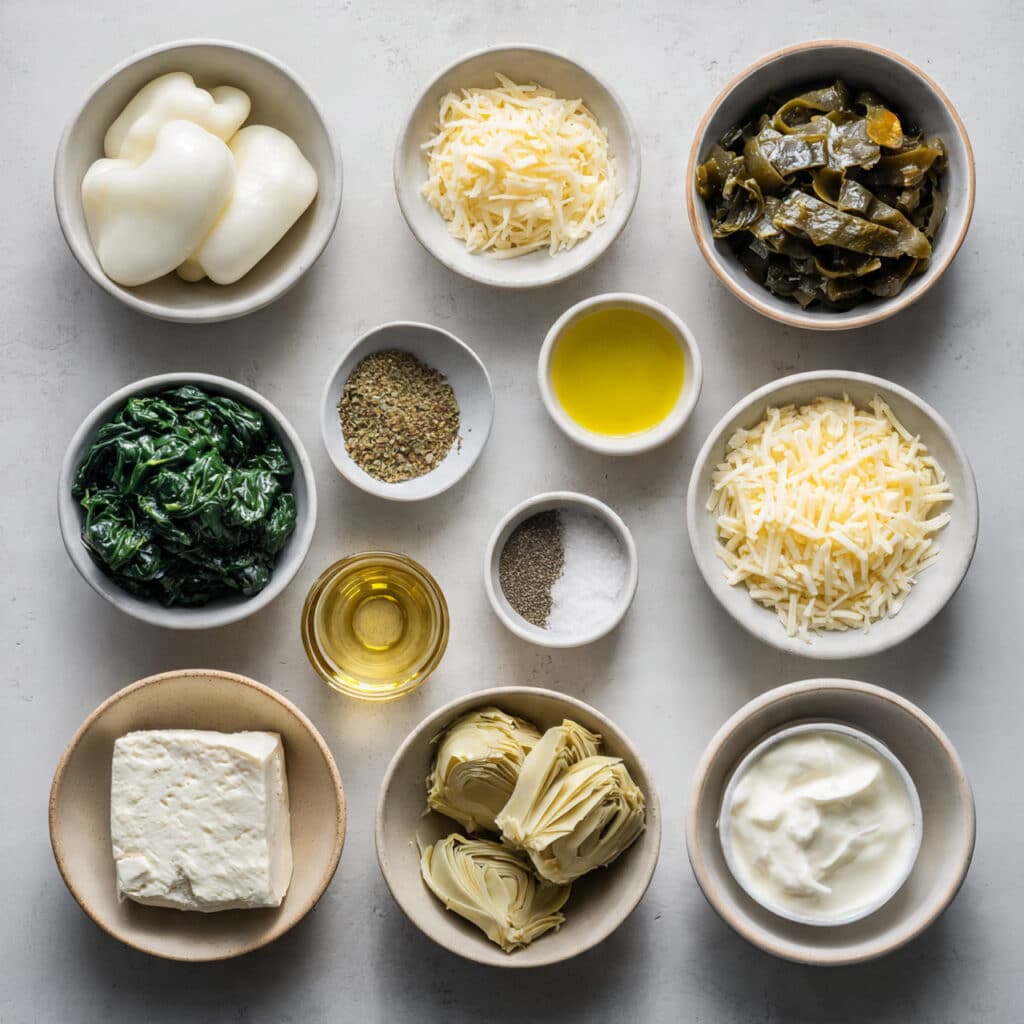 Artichoke Hearts: These add a soft, slightly tangy bite that balances the richness of the cheese. They’re also packed with fiber and give the filling that signature spinach-artichoke vibe.
