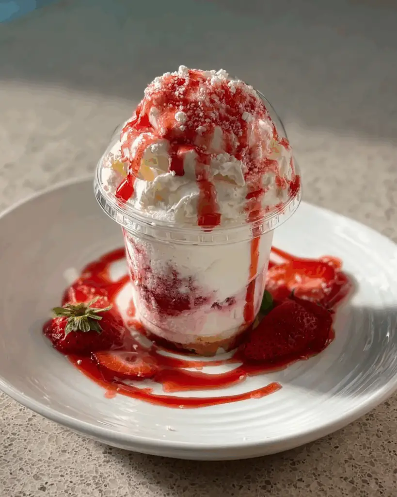 Serve in a tall glass with layers of strawberry purée and whipped cream for a visually stunning presentation. Garnish with a whole strawberry, a mini shortbread cookie, or a dusting of crushed freeze-dried berries for that Instagram-worthy finish.
